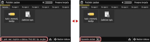 ]. Po zadanom se nakon uključivanja napajanja, zatvaranja zaslona pokretanja i odmah nakon prijave prikazuje [Početni zaslon]. Zaslon [Početni zaslon]