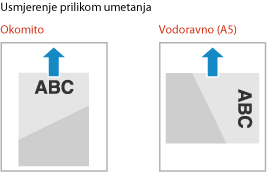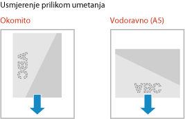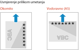 Pri umetanju papira s logotipom obratite pozornost na usmjerenje i na to koja je strana okrenuta prema gore.