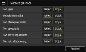 Postavite hoće li se reproducirati zvuk kada na uređaju dođe do zaglavljenja papira ili nekog drugog kvara.