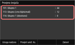 Na upravljačkoj ploči pritisnite [Provjera brojača] na zaslonu [Početni zaslon].