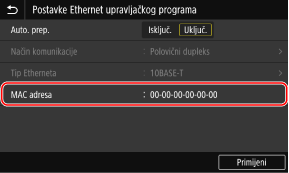 [Postavke Ethernet upravljačkog programa].