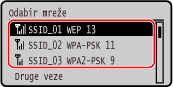 Da biste naveli neki drugi način provjere autentičnosti ili šifriranja, primijenite ručni način postavljanja za povezivanje. Spajanje na bežični LAN postavljanjem pojedinosti (metoda ručnog postavljanja)