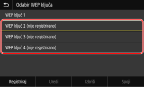 Ključ za šifriranje registrira se na zaslonu [Odabir ključa za šifrir.].