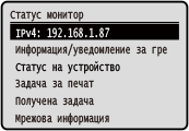 [Показване на IP адрес] [Статус монитор] Екран на Черно-бял LCD модел