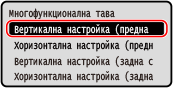 Пример: Когато регулирате позицията за печат на предната страна на хартията във вертикална посока