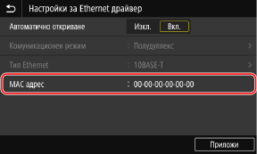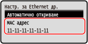 Можете да видите MAC адреса, зададен на устройството, когато устройството е свързано към кабелна LAN.