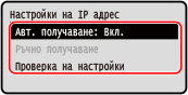 1 | Натиснете [Автоматично получаване]. Извежда се екранът [Настройки на IP адрес (авт. получаване)]. |
