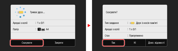 Дотримуйтесь інструкцій на екрані, щоб скасувати операцію друку.