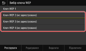 3 | Виберіть незареєстрований ключ шифрування та натисніть [Реєструвати]. ![]() Відобразиться екран введення ключа шифрування. |