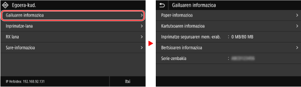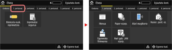 Elementu baten izena edo botoia ukitzean, elementua hauta dezakezu. Hautatutako pantaila bistaratzen da edo hautatutako eginbidea burutzen da.