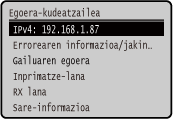 [IP helbidea]Makinaren IPv4 helbidea bistaratzen du modu lehenetsian. Hau ezkuta dezakezu ere.