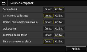) sakatzen duzunean, [Bolumen-ezarpenak] pantaila bistaratuko da.