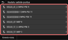 Autentifikazio- edo zifratze-metodo ezberdin bat zehazteko, erabili eskuzko konfigurazio-metodoa konektatzeko. Xehetasunak ezarriz konektatzea hari gabeko LAN batera (eskuzko konfigurazio-metodoa)