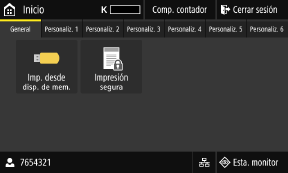 Aparece cuando el usuario ha iniciado sesión. Púlselo para cerrar la sesión después de completar las operaciones en el equipo. Inicio de sesión en el equipo