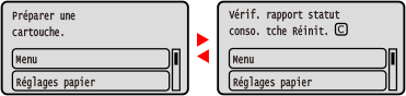 Lorsqu’un message apparaît à l’écran Si le message est trop long pour être affiché en une seule fois, il peut être séparé en segments plus petits affichés en alternance. Modèle à écran tactile ![]() Modèle à LCD noir et blanc ![]() |