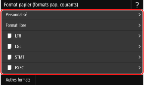 Appuyez sur [Autres formats], et sélectionnez le format de papier dans la liste affichée.