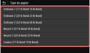 Sélectionnez le type de papier à enregistrer et appuyez sur