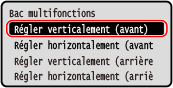 Vous pouvez spécifier la direction et la largeur du réglage pour chaque source de papier et chaque côté d’impression (recto et verso).