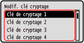 6 | Sélectionnez [Sélection. clé crypt.] et appuyez sur . |