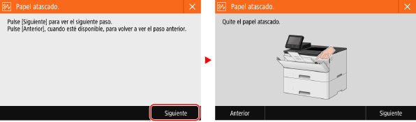 Ejemplo de visualización: Cuando se produce un error Modelo con pantalla táctil ![]() Modelo con pantalla LCD en blanco y negro ![]() |