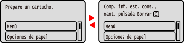 Cuando aparece un mensaje en la pantalla Si el mensaje es demasiado largo y no puede mostrarse de una sola vez, es posible que aparezca dividido en segmentos de menor tamaño que se muestren uno detrás de otro. Modelo con pantalla táctil ![]() Modelo con pantalla LCD en blanco y negro ![]() |