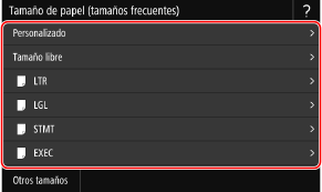 Pulse [Otros tamaños] y seleccione el tamaño de papel en la lista que aparece.