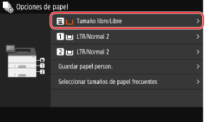 Pulse [Otros tamaños] y seleccione el tamaño de papel en la lista que aparece.