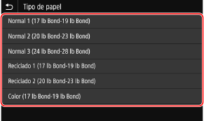 Si necesita cambiar con frecuencia el papel que se va a cargar, configure esta opción como [Libre]; esto reducirá el número de pasos necesarios para cambiar la configuración cada vez. Sin embargo, tenga en cuenta que esta configuración permite que la máquina realice la impresión incluso si hay una falta de coincidencia entre la configuración del tipo de papel del controlador de la impresora y el tipo de papel realmente cargado en la máquina.