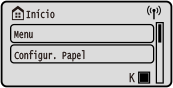 ] no painel de controle. Por padrão, a tela [Início] é exibida após a energia ser ligada, logo após o fechamento da tela de inicialização e logo após o login. Tela [Início]