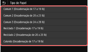 Selecione o tipo de papel a ser registrado.