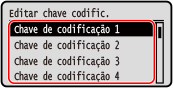 4 | Selecione um chave de criptografia que não esteja registrada e pressione .![]() A tela de entrada da chave de criptografia é exibida. |