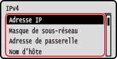 Vous pouvez visualiser le paramétrage de l’adresse IP définie pour la machine, comme l’adresse IPv4 et l’adresse IPv6.