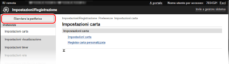 Sulla pagina portale della IU remota fare clic su [Impostazioni/Registrazione].