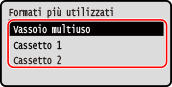 Selezionare [Seleziona formati carta più utilizzati] e premere