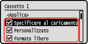 I formati carta le cui caselle di controllo sono deselezionate non vengono visualizzati nella schermata delle impostazioni della carta.
