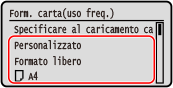 È possibile scorrere la schermata per visualizzare i formati carta (ad esempio buste) non visualizzati sullo schermo.