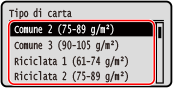 È possibile scorrere la schermata per visualizzare i formati carta (ad esempio buste) non visualizzati sullo schermo.