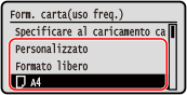 Se si cambia frequentemente il formato della carta, è possibile selezionare [Libero] per ridurre il numero di procedure necessarie per modificare l'impostazione ogni volta. Tuttavia, occorre tenere presente che questa impostazione permette alla macchina di stampare anche in caso di mancata corrispondenza tra il tipo di carta specificato nel driver della stampante e la carta effettivamente caricata nella macchina.