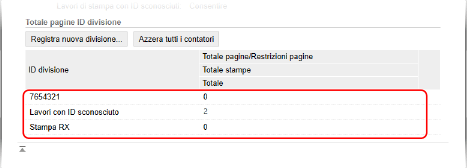 È possibile visualizzare il numero di pagine stampate per ciascun ID reparto quando la gestione ID reparto è abilitata.