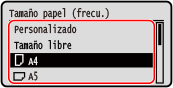 Si necesita cambiar con frecuencia el papel que se va a cargar, configure esta opción como [Tamaño libre]; esto reducirá el número de pasos necesarios para cambiar el ajuste cada vez. También puede mostrar un mensaje de error cuando el ajuste del controlador de la impresora sea significativamente diferente del tamaño del papel cargado.