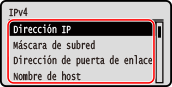 La dirección IP del equipo y la dirección MAC son necesarias para usar la IU remota y configurar las opciones del firewall. Compruebe la configuración actual.