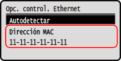 Puede ver la dirección MAC configurada en la máquina cuando esta esté conectada a la LAN con cable.