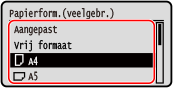Als het ingestelde papierformaat niet zichtbaar is
