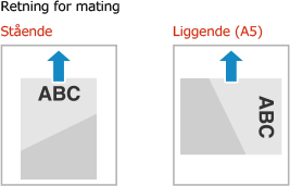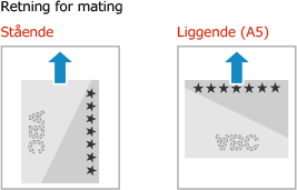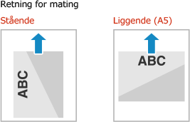 Som standard, vil retningen på som skal papiret legges i, og siden som det skal skrives ut på, variere avhengig om hvorvidt du vil skrive ut på den ene siden eller begge.