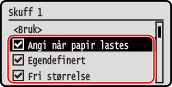 Merk av i boksene for hvilke papirformat som skal skjules, og klikk på [<Bruk>]