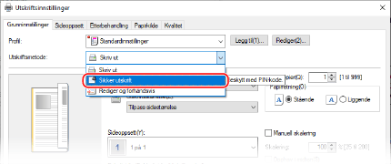 I [Utskriftsmetode], velger du [Sikret utskrift].