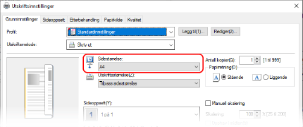 I [Sidestørrelse] på fanen [Grunninnstillinger] velger du papirformatet for dokumentet.