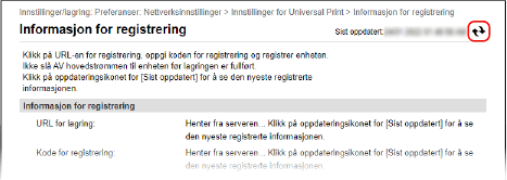 Klikk på [Innstillinger for Universal Print] øverst på skjermbildet for Fjernkontroll.