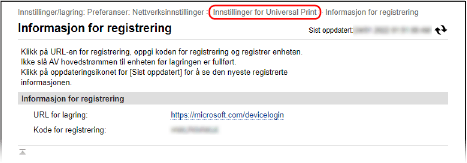Klikk på [Nettverksinnstillinger] [Innstillinger for Universal Print].