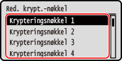 4 | Velg en krypteringnøkkel som ikke er registrert og trykk på .![]() Skjermbildet for å angi krypteringnøkkel vises. |